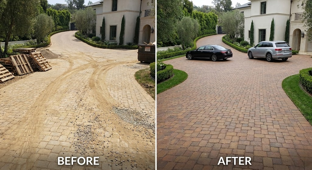 .After: Clean, pressure-washed pavers with a tidy, polished look.