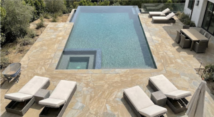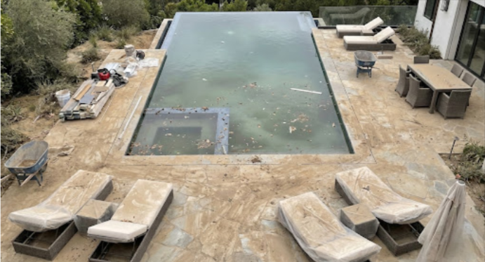 This luxury pool and deck area in a Pacific Palisades villa required a complete cleaning of the pool, deck, and surrounding landscaping.